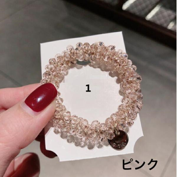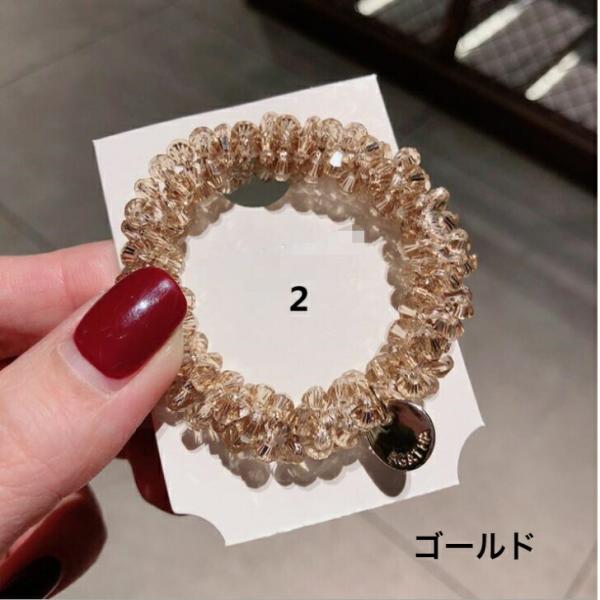 ヘアゴム クリスタル・パールビーズゴールドプレート付きデザインヘアゴム プチプラ かわいい 上品 オフィス パール ビジュー