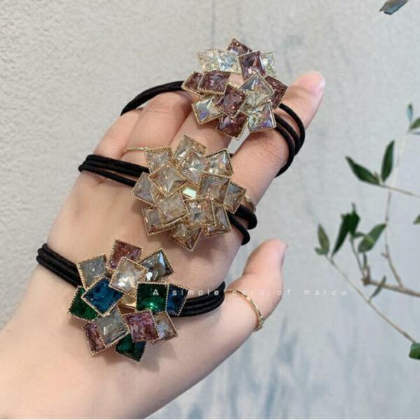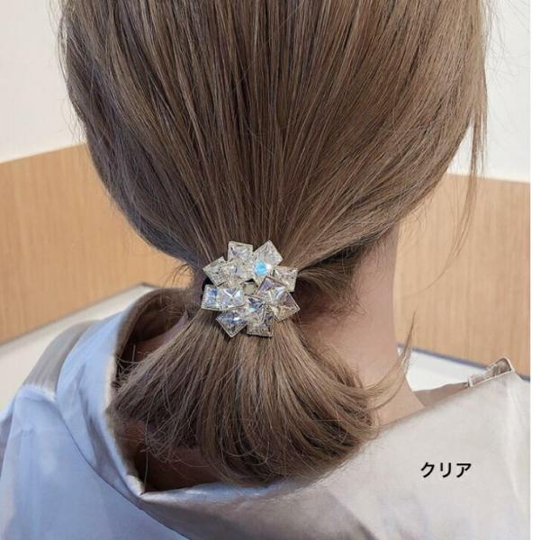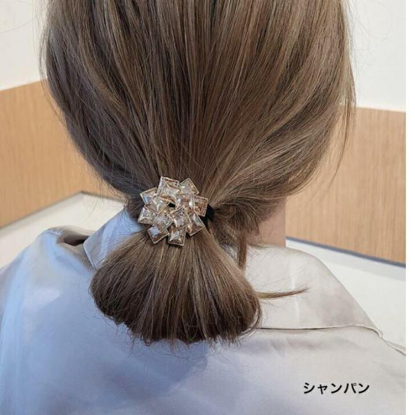 シュシュ クリスタルメタルフラワーゴールドチャームシュシュ かわいい おとな 花 パーティ まとめ髪 30代 40代 50代