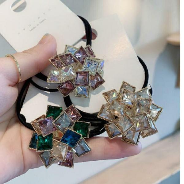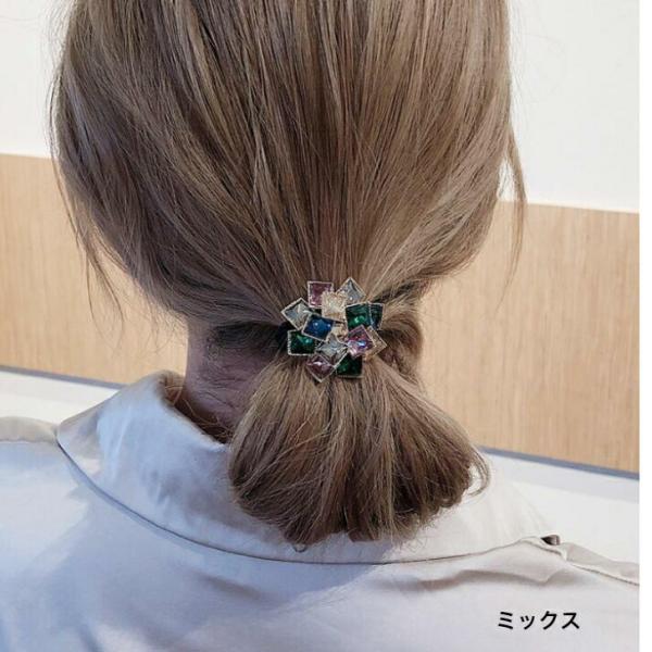 ヘアゴム クリスタル・パールビーズゴールドプレート付きデザインヘアゴム プチプラ かわいい 上品 オフィス パール ビジュー