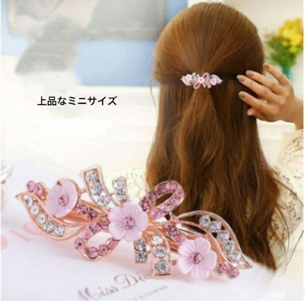 バレッタ フラワーデザインラインストーンミニバレッタ おとな かわいい 小ぶり ヘアアクセ 送料無料 花 30代 40代 50代 プレゼント