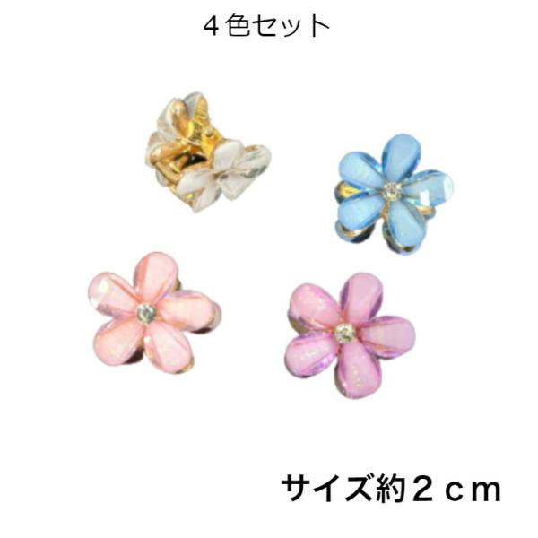 ヘアクリップ 4個セットクリスタルフラワーミニメタルクリップ クリア かわいい 花 ミニサイズ 送料無料 30代 40代 50代 プレゼント