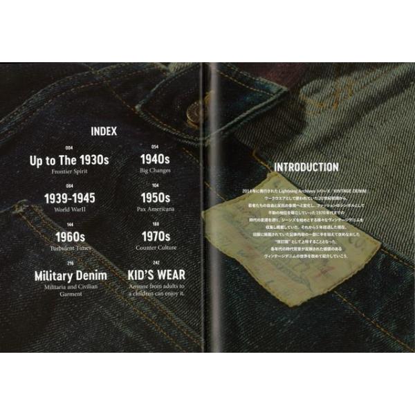 ワークウエアとして使われていた20世紀初頭から、ファッションのシンボルとして不動の地位を確立していった1970年代までの時代の変遷を遡り、ジーンズを始めとする様々なヴィンテージデニムを掲載。