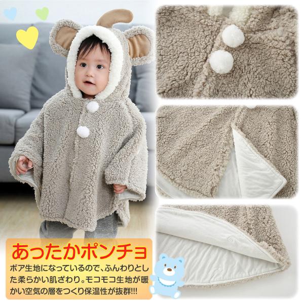 ベビーマント ケープ ポンチョ モコモコ 可愛い 暖かい 子供 キッズ 防寒 コート 子供服 フード付き 着ぐるみ ボア 耳付き ハロウィン コスプレ 子供