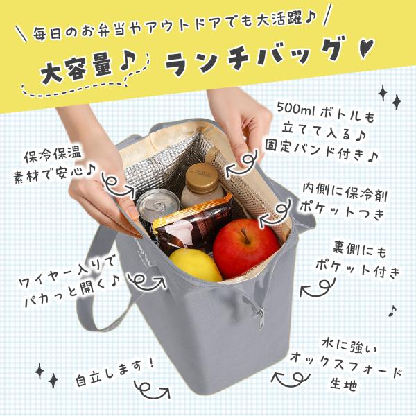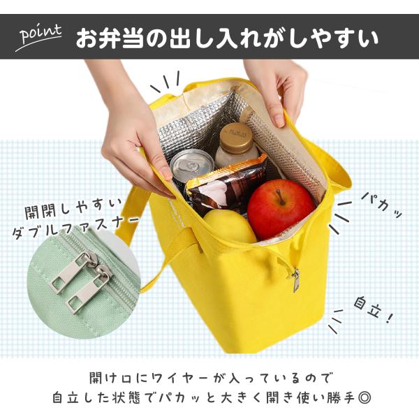 開き口にワイヤーが入っているので、大きく開き、お弁当や飲み物をポン!と収納可能♪