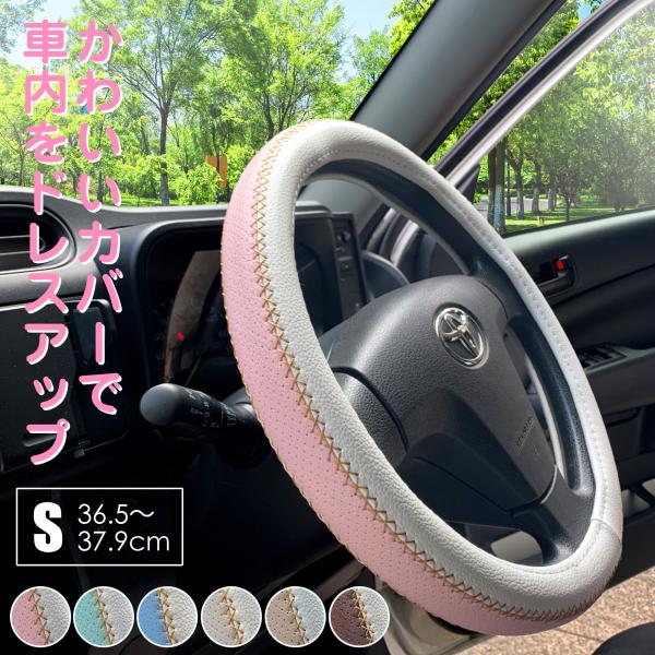 ハンドルカバー 軽自動車 おしゃれ sサイズ ステアリングカバー 編み込み かわいい 薄手 編み上げ 車 ステッチ 簡単取付 ミニバン O型