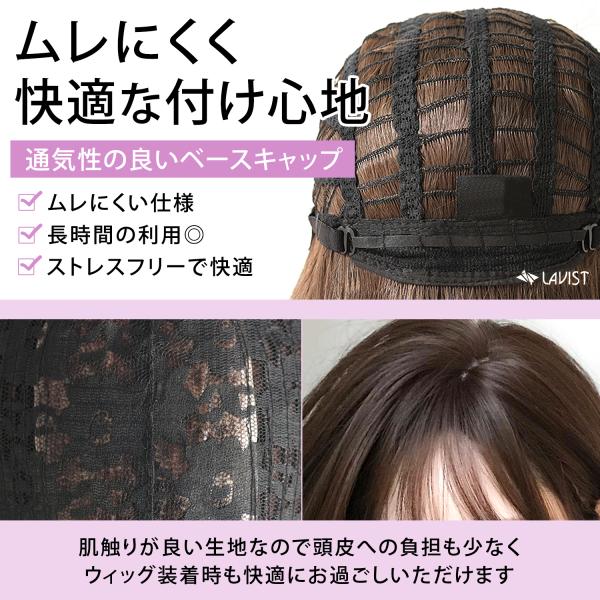 通気性の良いベースキャップはムレにくい仕様で、長時間の利用時もストレスフリーでお使いいただけます。肌触りが良い生地なので頭皮への負担も少なく、ウィッグ装着時も快適にお過ごしいただけます。