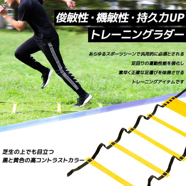 俊敏性・機敏性のトレーニング機材としてお使いいただけて、屋内・屋外どちらでも使用可能なトレーニングラダーです サッカーやフットサル、バスケットボールのトレーニングにオススメ