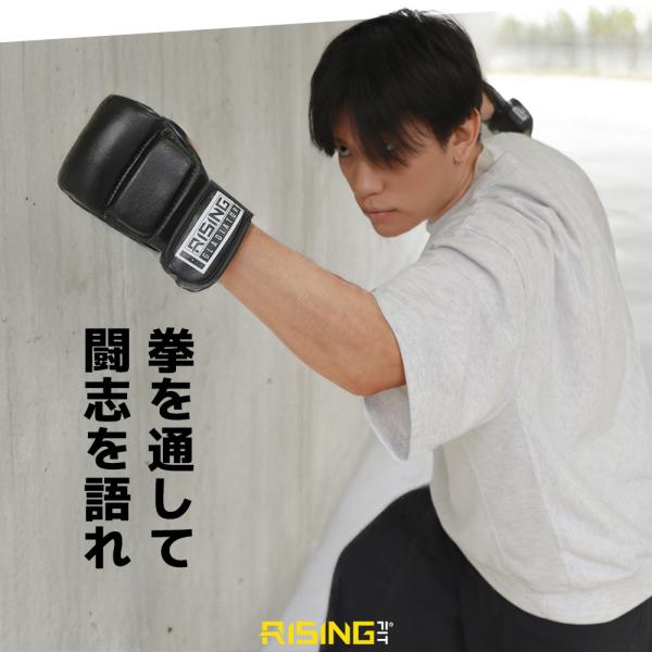 格闘技やトレーニング、フィットネスに幅広く使えるRISING-FITのオープンフィンガーグローブ。