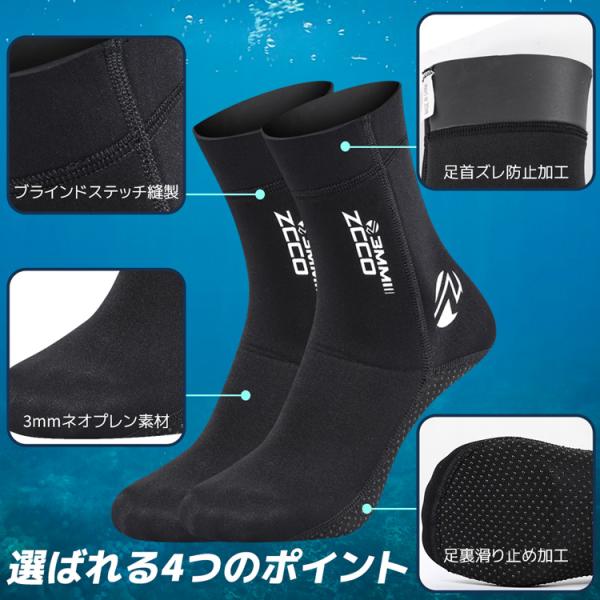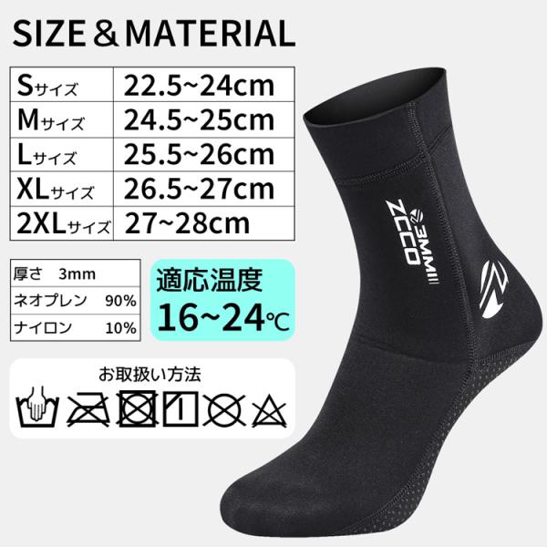 ZCCO 3mm ダイビングソックス フィンソックス 保温性 滑止め サーフブーツ マリンブーツ シュノーケリングソックス サーフィン