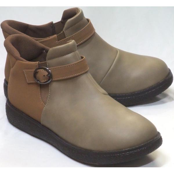 パンジー PS-1540 ハンズフリー 生活防水 防滑 ショートブーツ オークコンビ レディース 幅広4E ストラップ サイドゴア 抗菌防臭 ウインター 婦人靴 Pansy