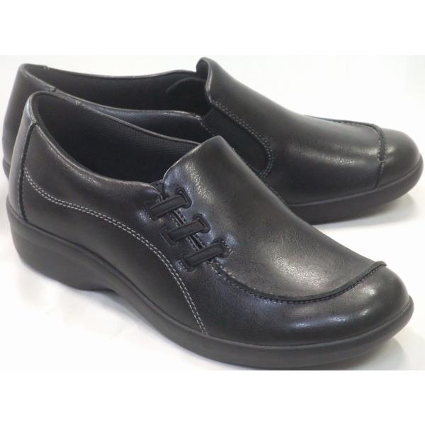 トパーズ モア TZ-1414 コンフォートカジュアルシューズ ブラック レディース 幅広4E オブリーク ゆったり 足裏サポート スリッポン 婦人靴 TOPAZ MORE 母の日