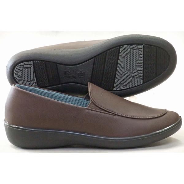 パンジー2324 全天候型 ローヒールパンプス ブラウン レディース 防水 抗菌加工 3E幅広 シンプル モカタイプ フラットシューズ レインステップ Pansy
