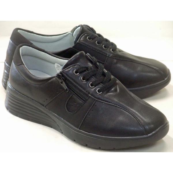 アシックス商事 ラクウォーク RL-9221 快適ウォーキングシューズ ブラック レディース ライザップコラボ ファスナー付 幅広4E 軽量 防滑ソール スニーカー