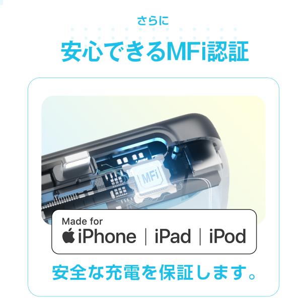 モバイルバッテリー A88 2.4A 急速充電 2台同時充電 6800mAh iPhone Lightning type-c 一体型 MFi認証済 PSE認証 充電ケーブル不要 iPhone15シリーズ対応