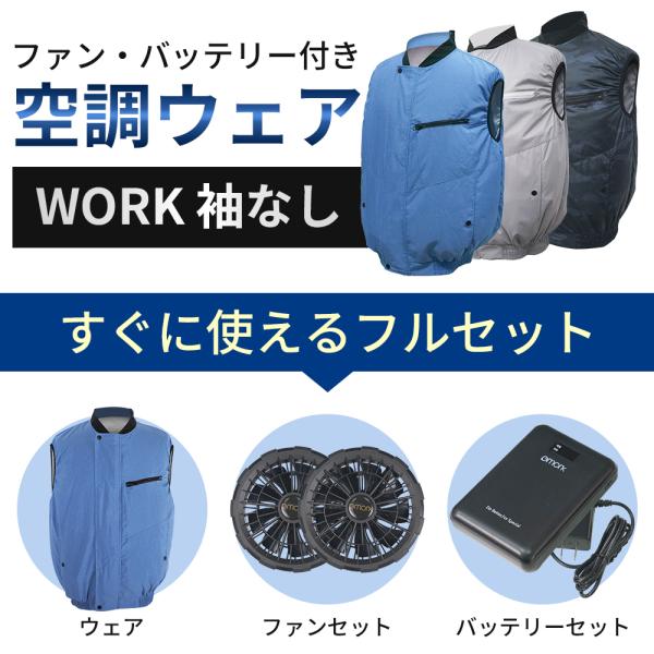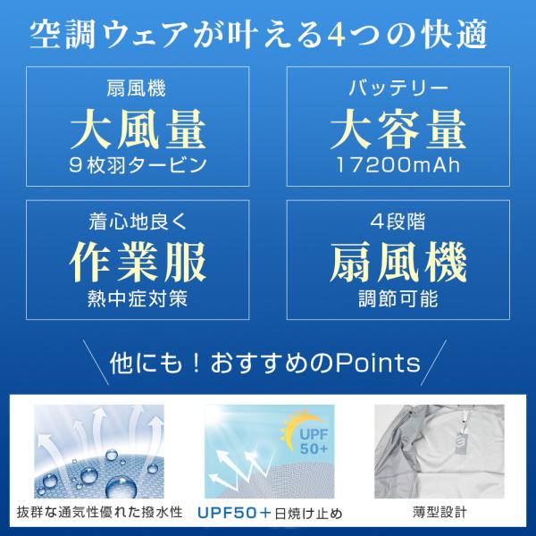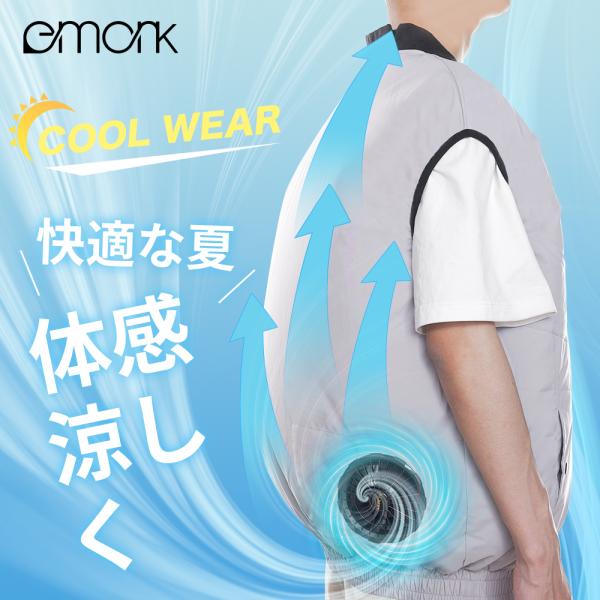 「進化版」eMonk ファン付きウエア バッテリー ファンセット ベスト 16V ワークウェア 17200mAh 最大22H稼動可能 大風量 薄型 夏 熱中症対策 UVカット 撥水加工