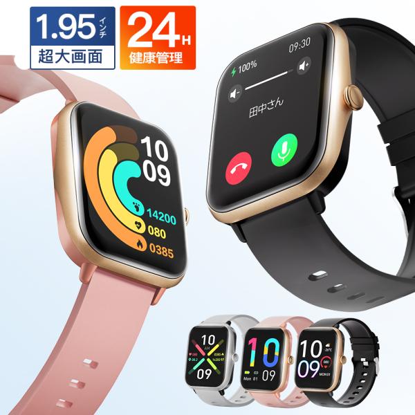 スマートウォッチ H6 1.95インチ大画面 血中酸素 皮膚温変化 心拍 血圧測定 活動量 通話可能 生理管理 着信通知 iphone 対応 android 対応 line 対応