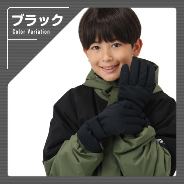 防水・防寒に優れた4層構造で雪や雨をしっかり防ぎながら、中綿とフリース裏地が手元を温かく温め快適な着心地。