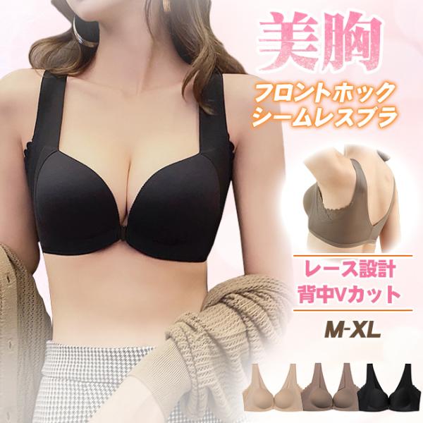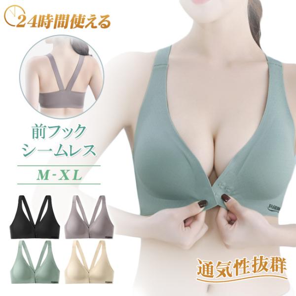 【2点買うと20%OFF】ナイトブラ 24時間使える フロントホックブラ ブラジャー ノンワイヤー シームレス 美胸 パッド付き 取り外し可能 前ホック インナー 爆買