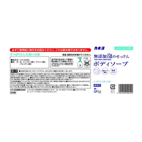 カネヨ石鹸 無添加 泡のせっけん ボディーソープ 5kg