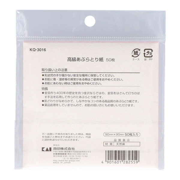 貝印 高級あぶらとり紙 (金箔打紙製法) 50枚入り (4901601282559)