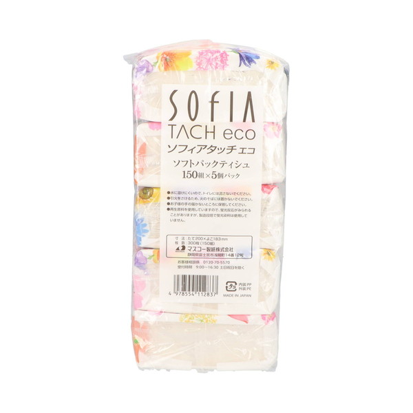 マスコー製紙 ソフィアタッチエコ ソフトパックティッシュ 150組×5個パック
