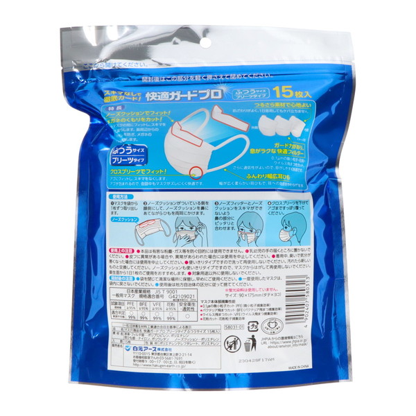 白元アース 快適ガードプロ マスク プリーツタイプ ふつうサイズ 15枚入
