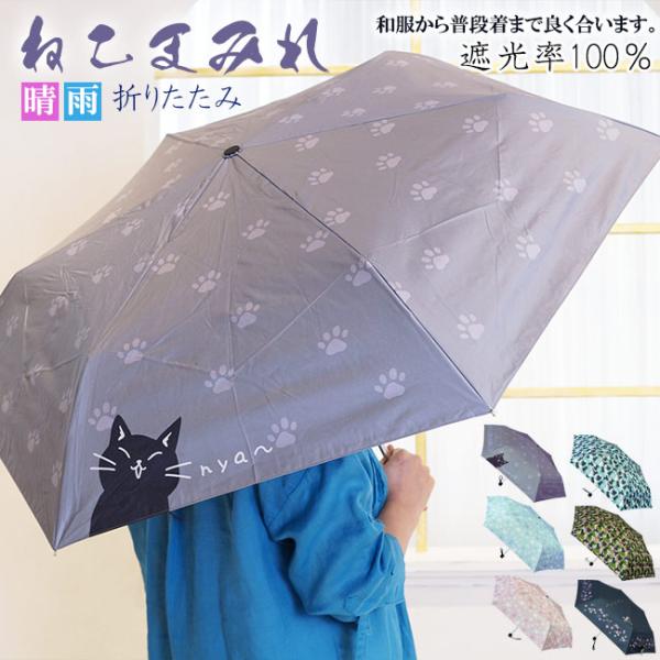 日傘 遮光率100% 折り畳み 晴雨兼用 UVカット ねこまみれ JKO-491 母の日 ギフト 傘 女性 日傘 折りたたみ