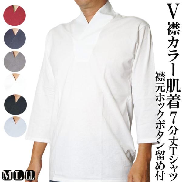 V襟付き 肌着襦袢 Tシャツ 7分袖 襟元ボタンホック付き 綿100% M/L/LL 9632050