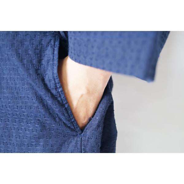 作務衣 小格子織で、やわらかな風合いの着心地の良い一着