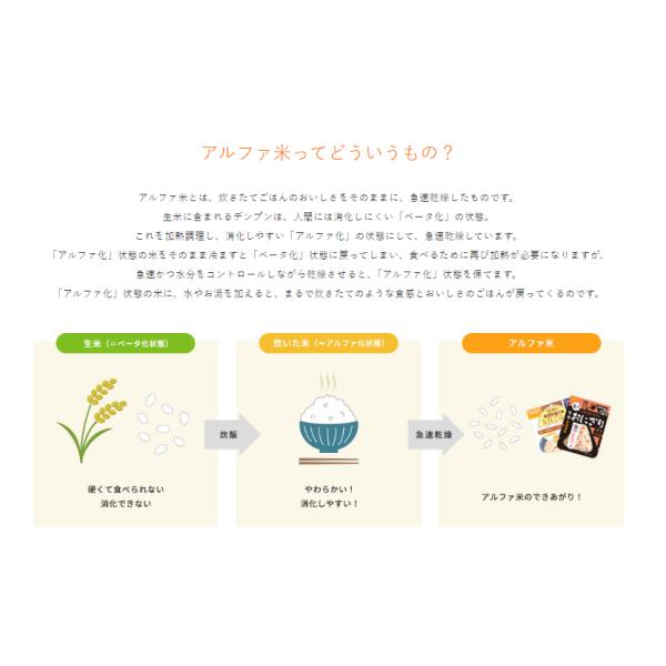 アルファ米とは、炊きたてごはんのおいしさをそのままに、急速乾燥したものです。