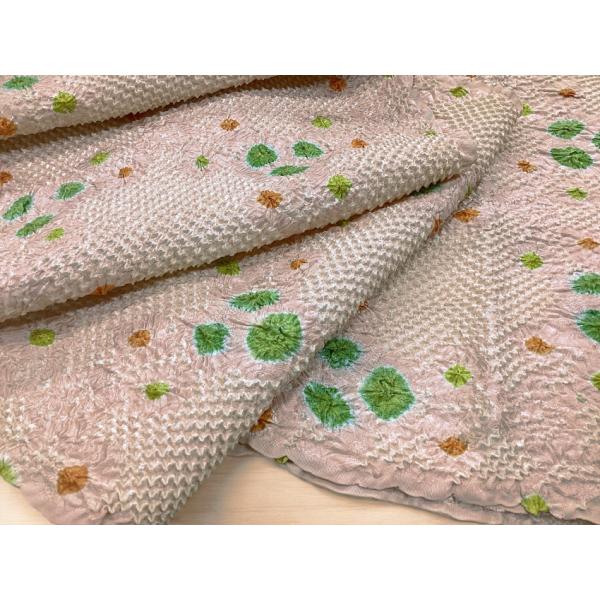 着物のはぎれ 正絹 手絞り 京友禅小紋 反物切り売り 薄ピンク 6-11 着物反物