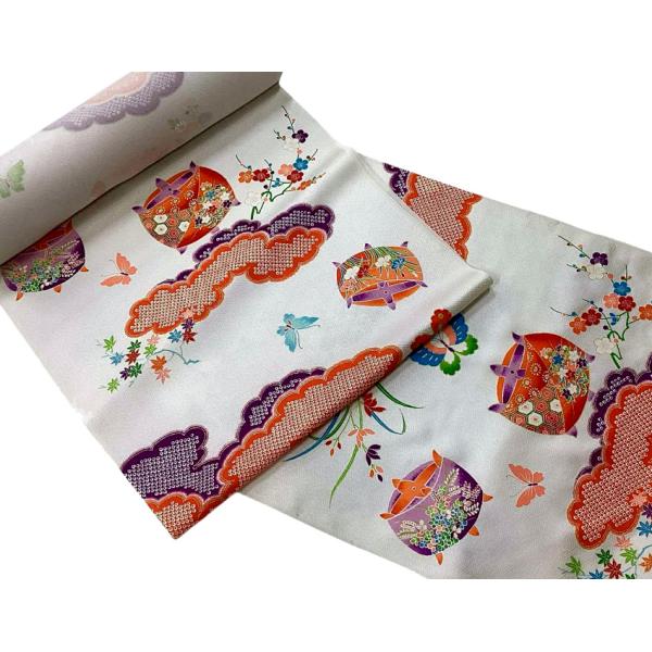着物のはぎれ 正絹紋綸子 疋田糸巻き 四つ身小紋 京友禅小紋 75cm単位反物切り売り 着物反物