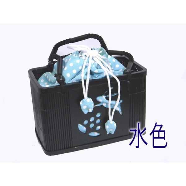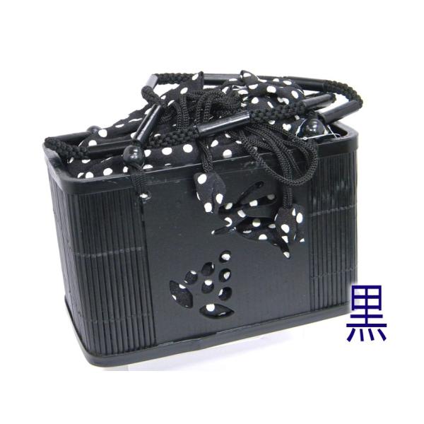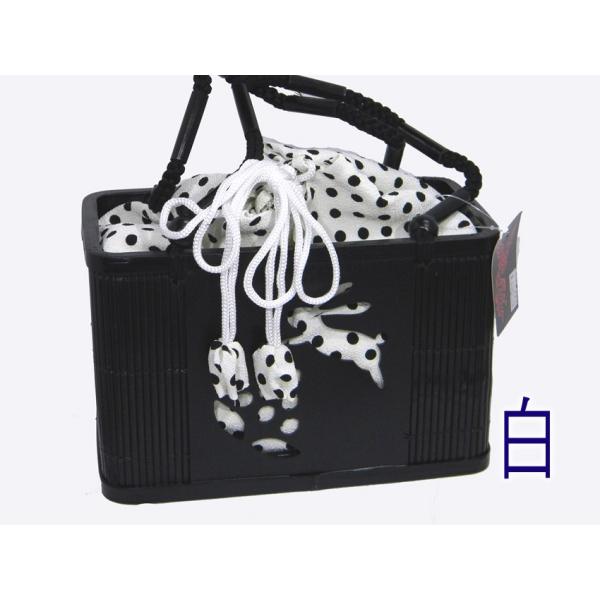浴衣 バッグ 竹篭巾着 うさぎ 透かし彫り 縮緬水玉柄 竹カゴバッグ 浴衣用巾着