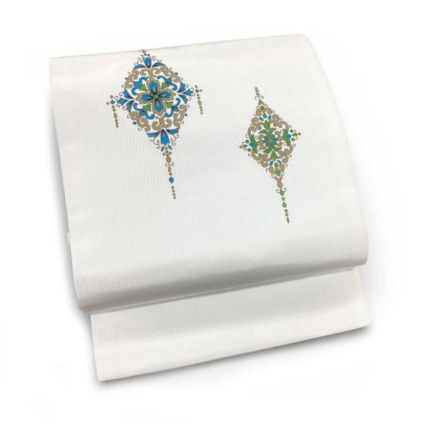 名古屋帯 塩瀬染帯 洗える帯 仕立上がり アウトレット なごや帯 フォンテーヌターコイズ