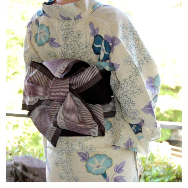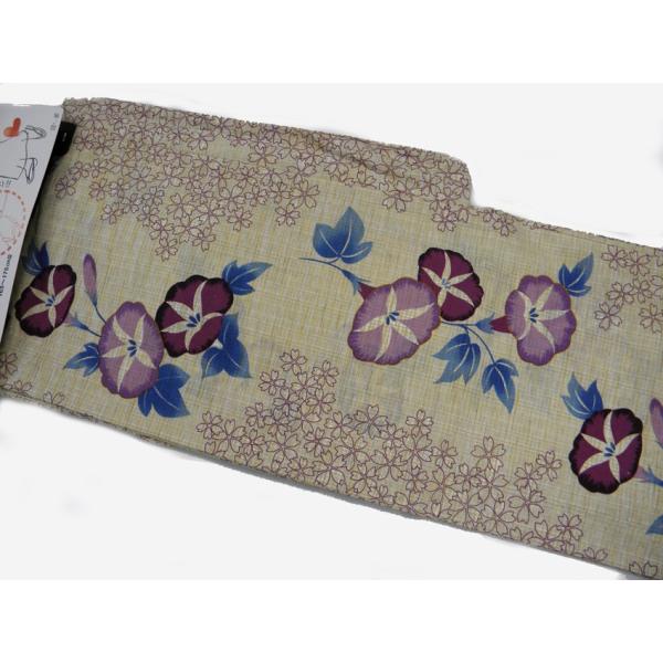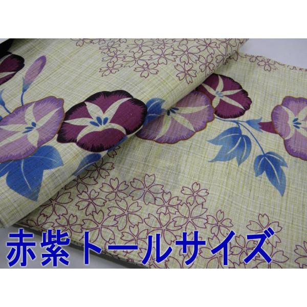 綿麻浴衣 仕立て上り浴衣 朝顔に桜 プレタ浴衣 古典柄の浴衣 S/M/L