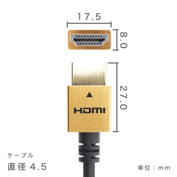 HDMIケーブル 1m スリムケーブル 4K/60p HDR ARC HDCP 対応 プレミアムハイスピード準拠品 HDMI2.0b 細め HDM10-460GD HDM10-491SV HDM10-494BK