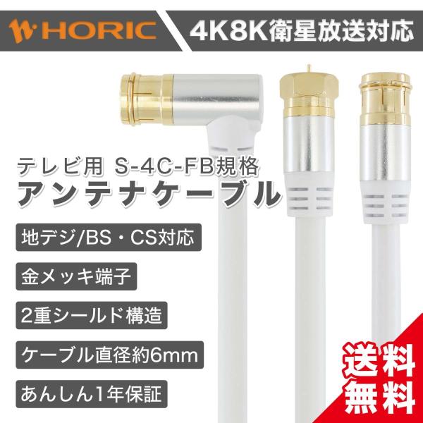 選べるアンテナケーブル 2m アルミヘッド 4K8K 地デジ BS CS TV 衛星放送 対応 テレビケーブル 同軸ケーブル ホワイト 白/ブラック 黒 4C HORIC ホーリック