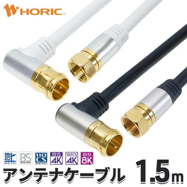 極細 アンテナケーブル 1.5m L字差込式-L字差込式 4K 8K 地デジ BS CS 対応 S-2.5C-FB 白/黒 テレビケーブル テレビ線 同軸ケーブル L型 AC15-780WW AC15-781BB