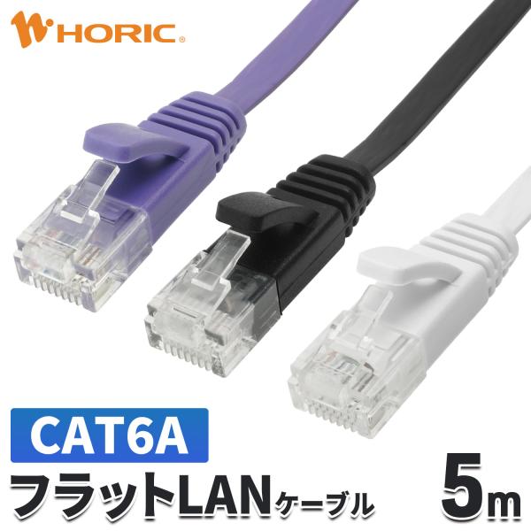 フラット LANケーブル 5m CAT6A 10Gbps対応 パープル/ブラック/ホワイト ツメ折れ防止 カテゴリ6A UTPケーブル 5メートル LC50-575FB LC50-508FB LC50-038FW