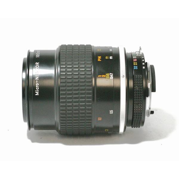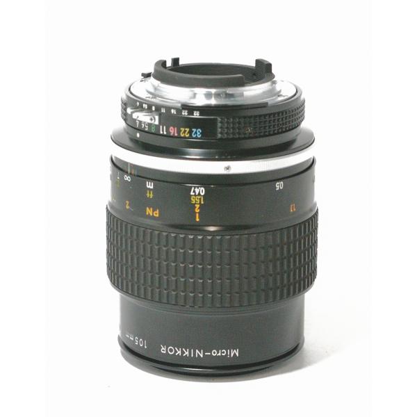 同社105mmマクロレンズについては、1960年初頭のFマウント黎明期より製品群にラインナップされておりましたが、70年代になるとボディ側での露出制御の技術が発展、絞り値をボディ側に伝達するためレンズの「Ai」化と、用途を増やすためマクロレンズ化されたのが当モデルになります。