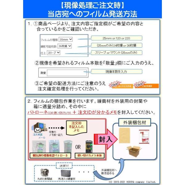 (3)現像ご希望のフィルムと、上記(2)で控えた「注文ID」を記入したメモ紙を同封の上、当店宛へお送りください(※)。