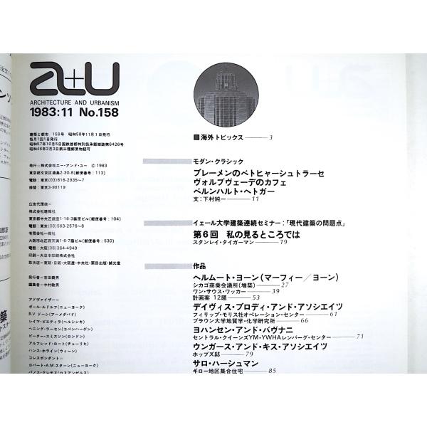 a+u 1983年11月号「H.ヨーンの最近作」デイヴィス・ブロディ ウンガース・キス インタビュー◎山本理顕 エーアンドユー 建築と都市