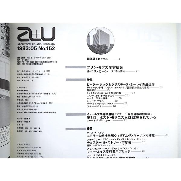 a+u 1983年5月号「ピーター・クックとクリスチーヌ・ホーレイの最近作」ルイス・カーン ポール・ルドルフ エーアンドユー 建築と都市