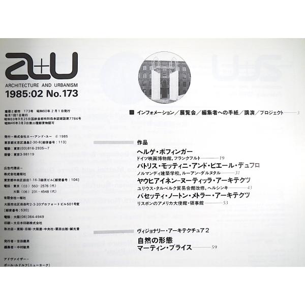 a+u 1985年2月号/ヘルゲ・ボフィンガー マーティン・プライス ケネス・フランプトン ピーター・セルシング エーアンドユー 建築と都市