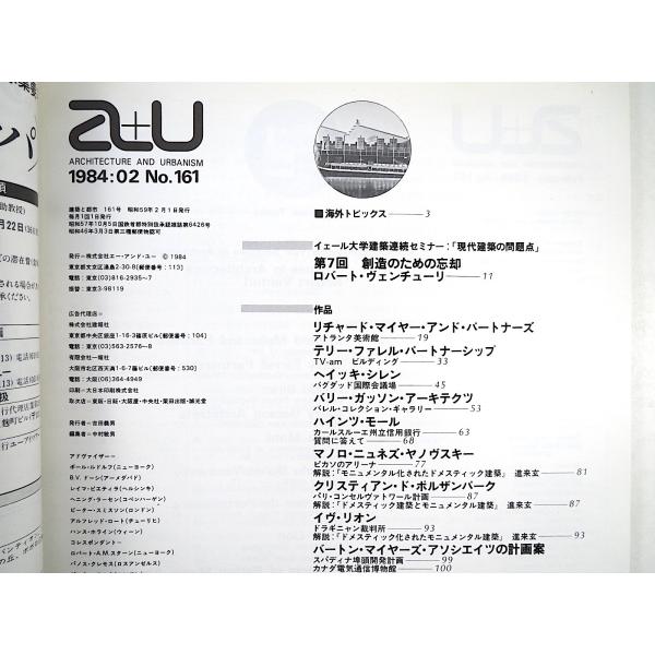 a+u 1984年2月号/インタビュー◎相田武文 イェール大学セミナー フランスの建築家 ニュネズ ポルザンパーク エーアンドユー 建築と都市