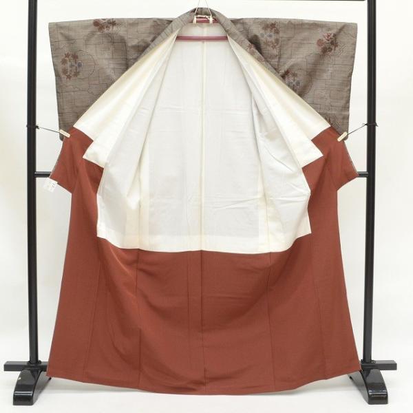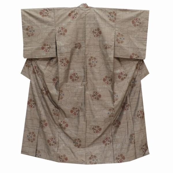リサイクル着物 大島紬 中古 正絹 仕立て上がり 女性 裄63.5cm 身丈160.3cm 茶色系 花文様 mm2146b