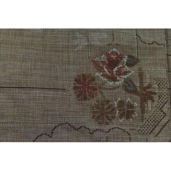 大島紬 中古 着物 リサイクル 正絹 泥大島 花文様 茶系