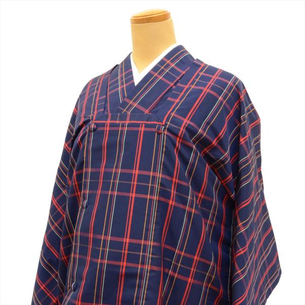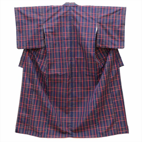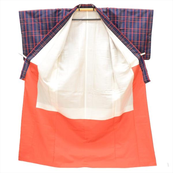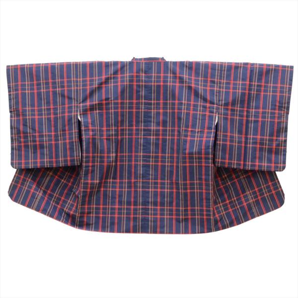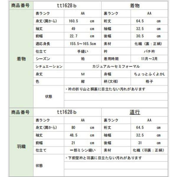 着物 道行コート 大島紬風 身丈160.5cm M 裄64.5cm アンサンブル 仕立て上がり リサイクル着物 女性 小紋 レディース 化繊 紺色系 格子文様 中古 tt1628b