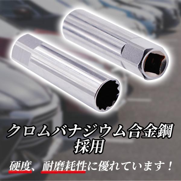 12角デザイン: 12角の形状で、しっかりとプラグにフィットし、スパークプラグの交換を容易にします。