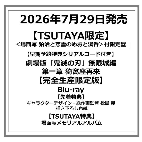 【早期予約特典シリアルコード付き】【TSUTAYA限定】【先着特典付・予約ポイント5倍】劇場版「鬼滅の刃」無限城編 第一章 猗窩座再来 【完全生産限定版】Blu-ray